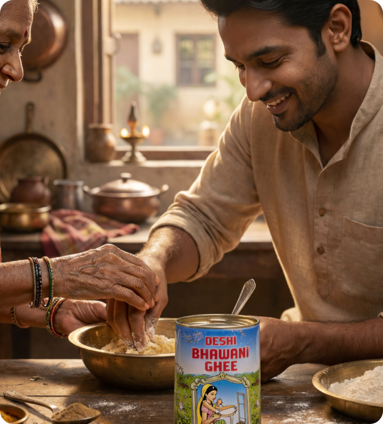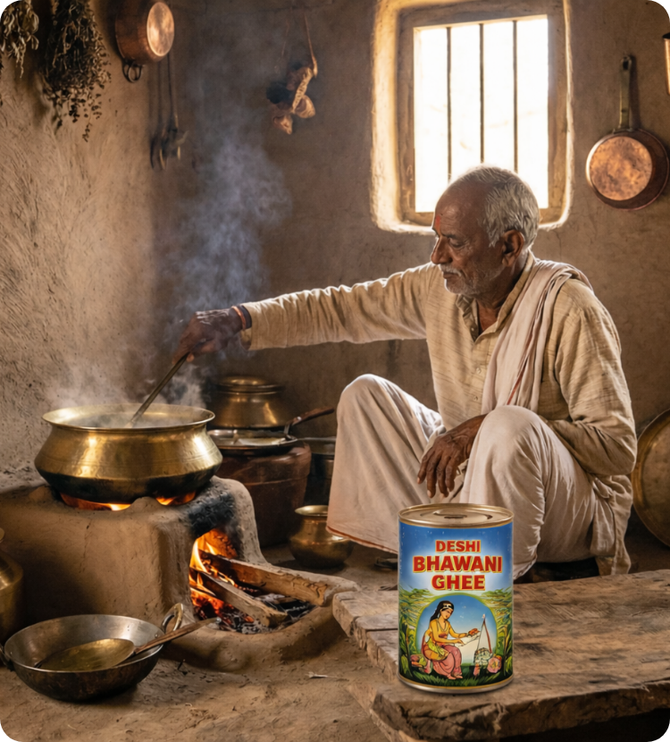 Our aim is simple — to bring pure, honest ghee to every kitchen. With Deshi Bhawani Ghee, you experience the richness of a product made with dedication, purity, and respect for time-honoured methods.